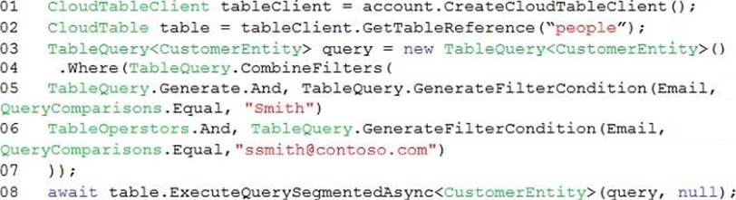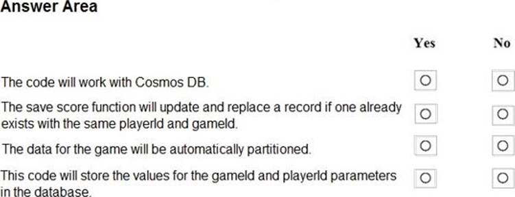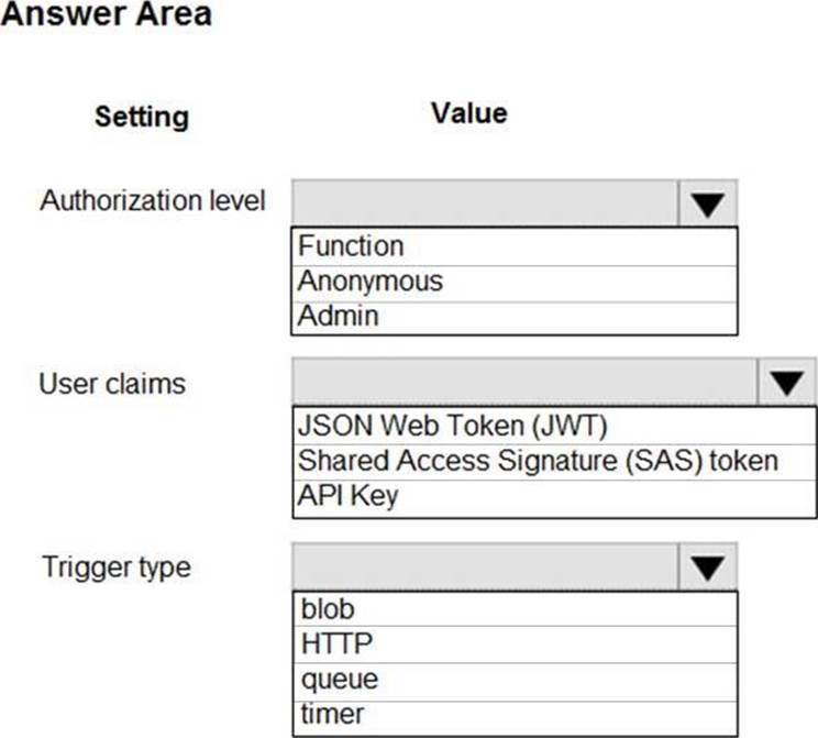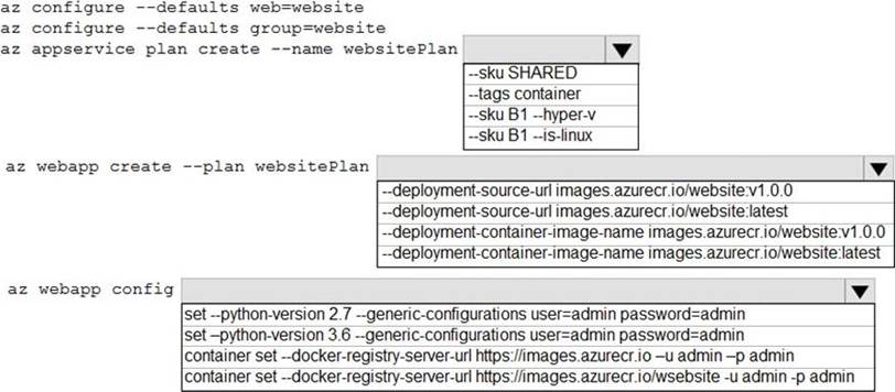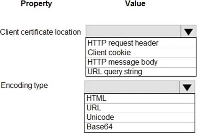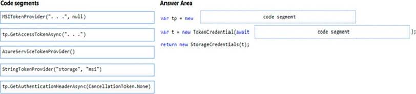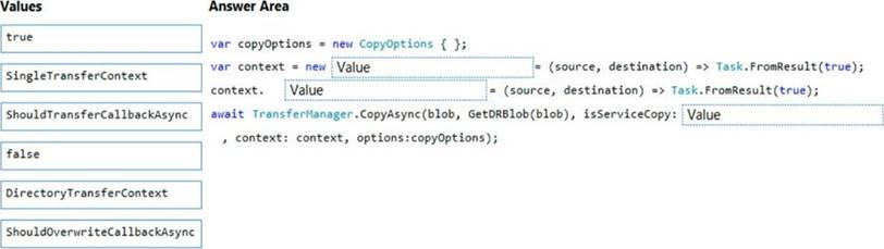 How should you complete the code? To answer, select the appropriate options in the answer area. NOTE: Each correct selection is worth one point.