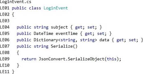 You need to insert code at line LE03 of LoginEvent.cs to ensure that all authentication events are processed correctly.