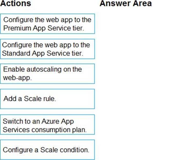 You develop and deploy a stateful ASP.NET Core 2.1 web application named Policy service to an Azure App Service Web App. The application reacts to events from Azure Event Grid and performs policy actions based on those events.