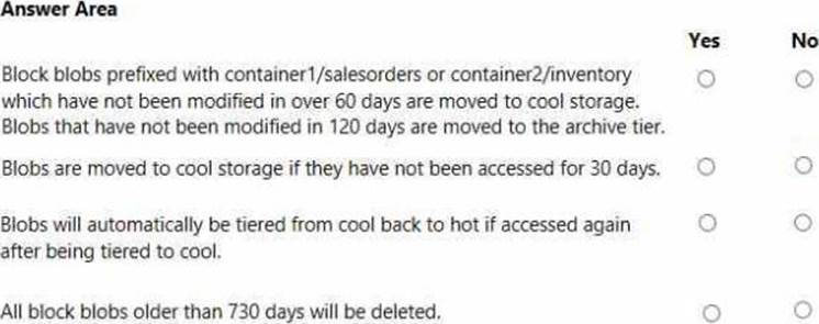 All Azure App Service Web Apps must write logs to Azure Blob storage. All log files should be saved to a container named logdrop. Logs must remain in the container for 15 days.