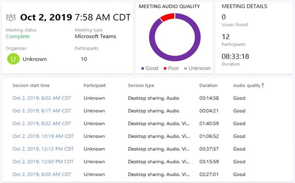 ✑ An administrator named Admin5 must be able to review the required bandwidth to support audio conferencing, video conferencing, and screen sharing in Microsoft Teams.