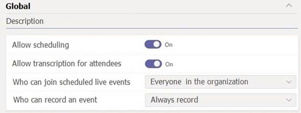 Litware has a Microsoft 365 subscription that has Office 365 Enterprise E3 licenses for all users. All the E3 products and services are enabled for each user.