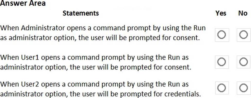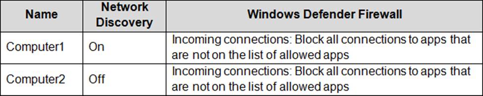 2. Your network contains an Active Directory domain. The domain contains a computer named Computer1 that runs Windows 10.