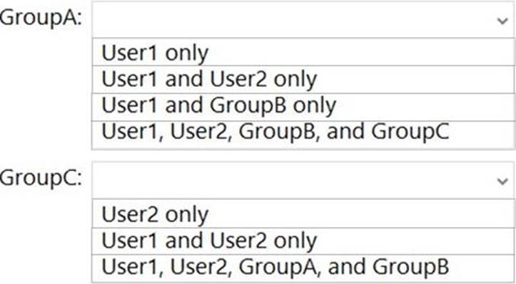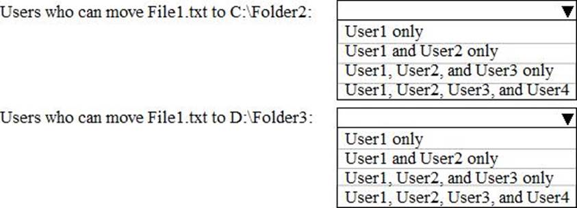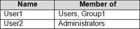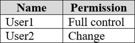 When accessing Share1, which two actions can be performed by User1 but not by User2? Each correct answer presents part of the solution. NOTE: Each correct selection is worth one point.