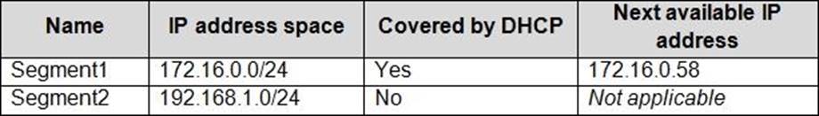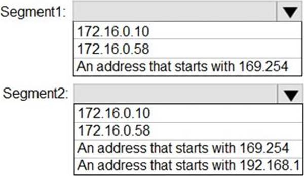 Which IP address should you identify for each segment? To answer, select the appropriate options in the answer area. NOTE: Each correct selection is worth one point.