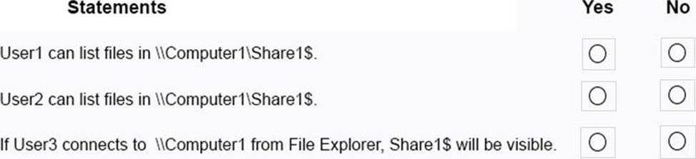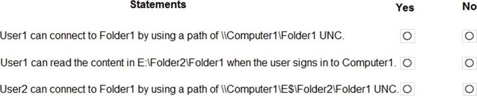 3. You have a computer named Computer1 that runs Windows 10. Computer1 contains a folder named Folder1.