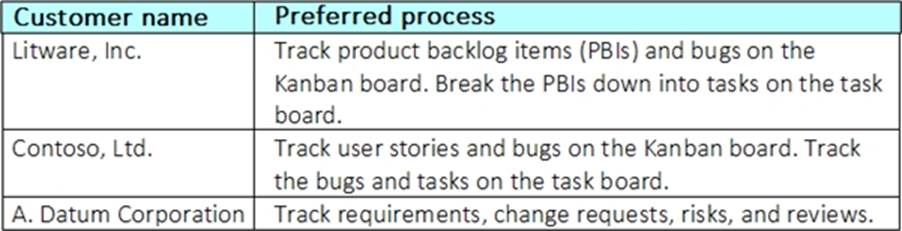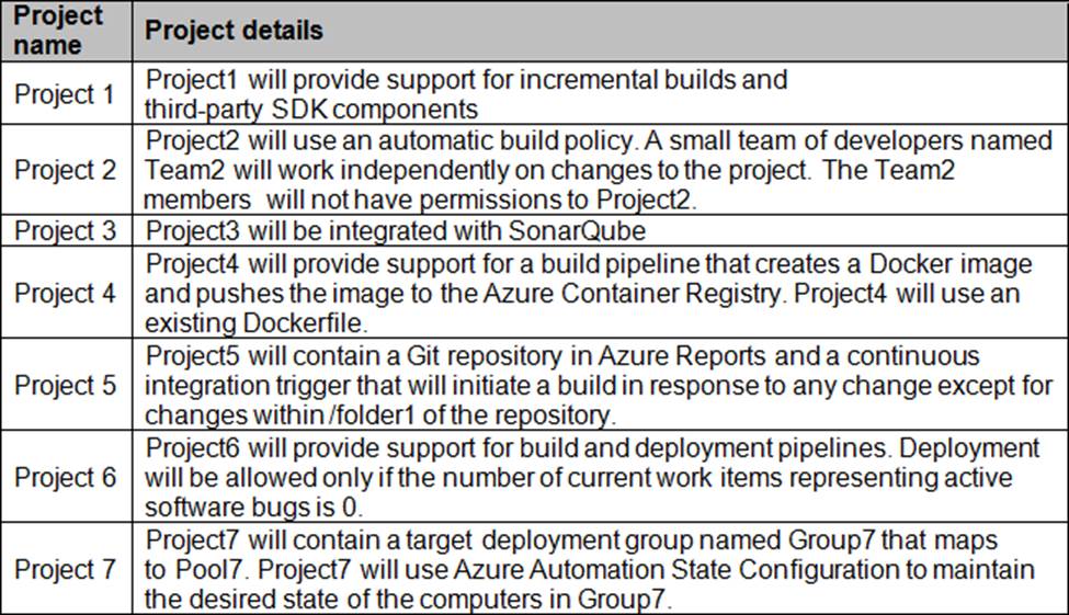 Contoso plans to create projects in Azure DevOps as shown in the following table.