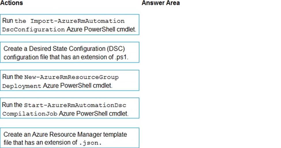 Which three actions should you perform in sequence? To answer, move the appropriate actions from the list of actions to the answer area and arrange them in the correct order.