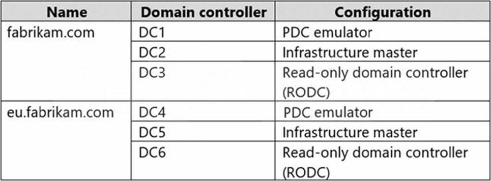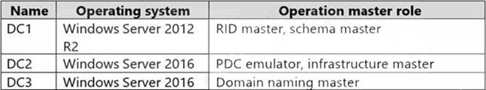 The AD DS domain contains the domain controllers shown in the following table.