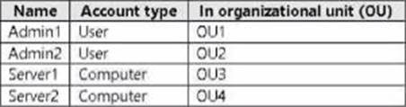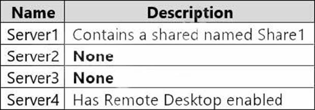 The contoso.com domain contains servers that run Windows Server 2022 as shown in the following table.