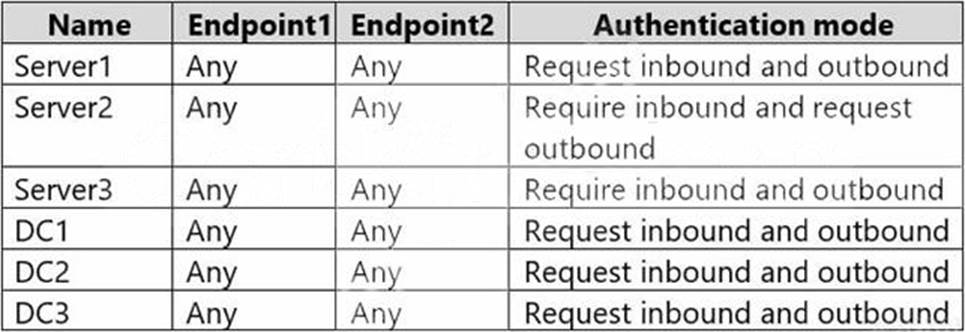 By using Windows Firewall with Advanced Security, the servers have isolation connection security rules configured as shown in the following table.