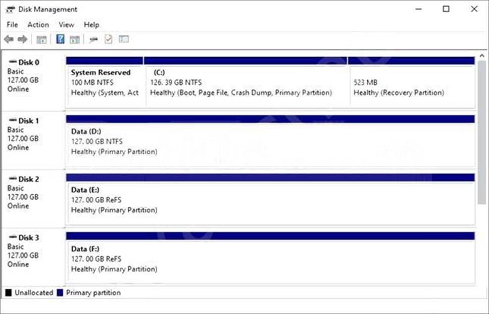 Server4 has the disk configurations shown in the following exhibit.