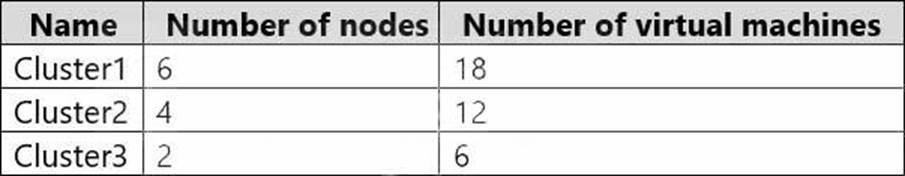 The contoso.com domain has the Hyper-V failover clusters shown in the following table.