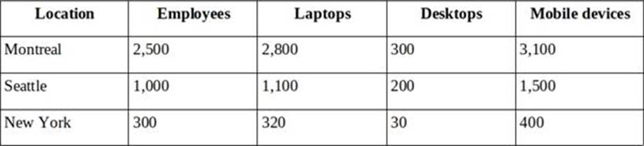 The mobile devices of the users in the Montreal and Seattle offices run Android. The mobile devices of the users in the New York office run iOS.