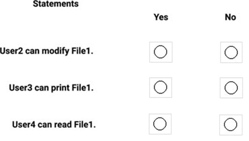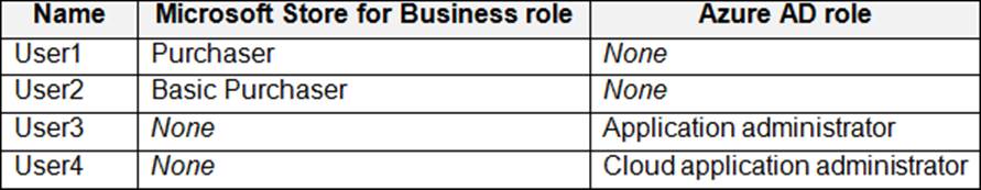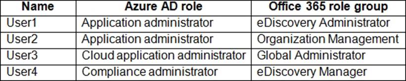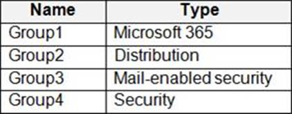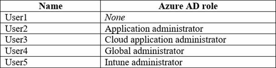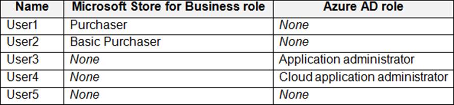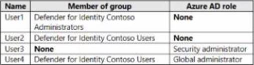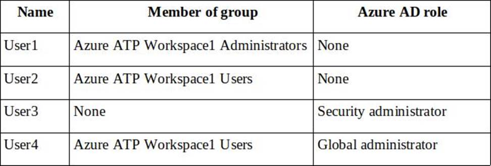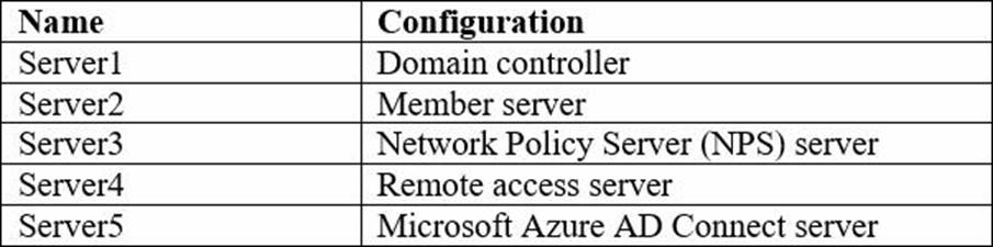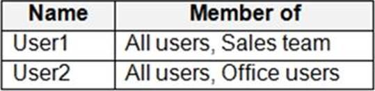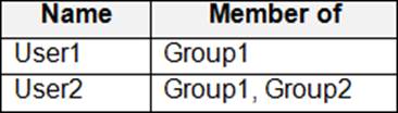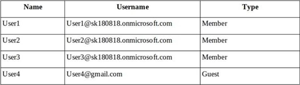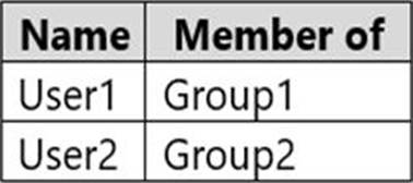 The domain is synced to Azure Active Directory (Azure AD) and includes the users shown in the following table.