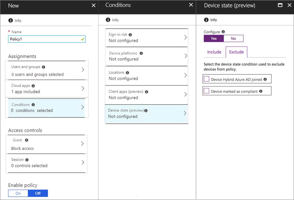 • Ensure that the users in Group1 can only access Microsoft Exchange Online from devices that are enrolled in Intune and configured in accordance with the corporate policy.