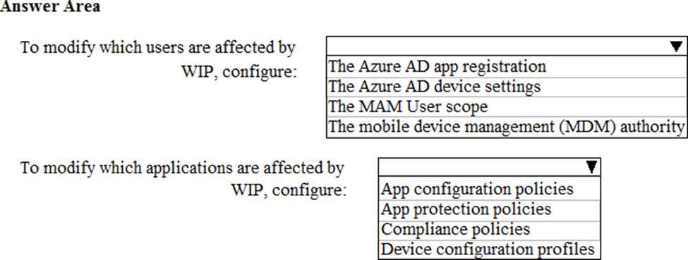• Configure Windows Information Protection (W1P) for the Windows 10 devices.