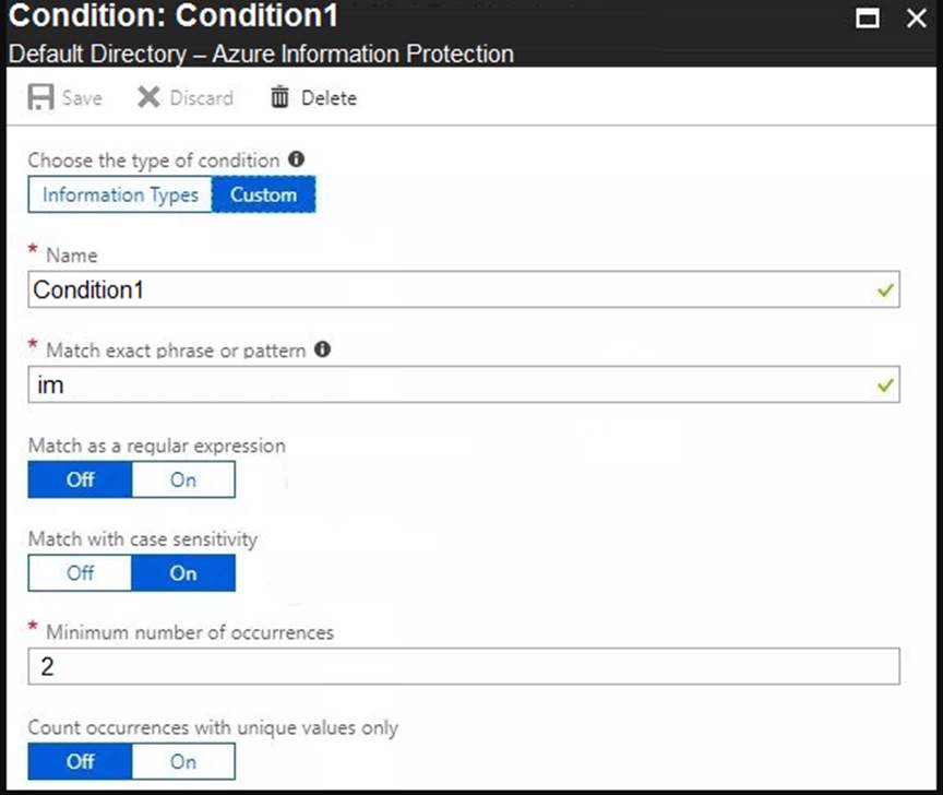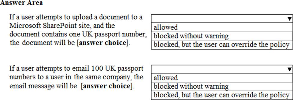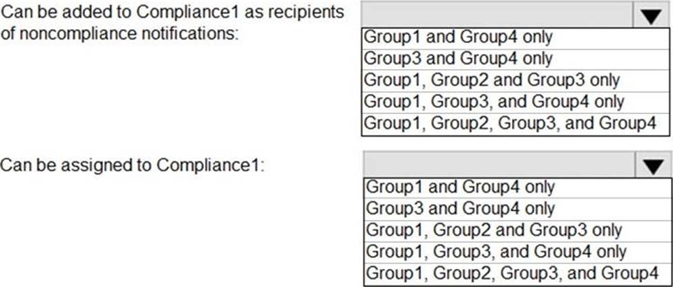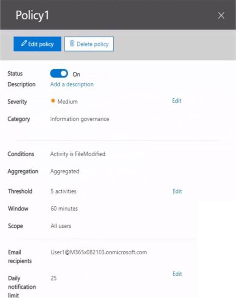 Which two additional settings should you configure in Policy1? To answer, select the appropriate options in the answer area. NOTE: Each correct selection is worth one point.