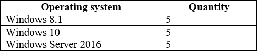 All servers run Windows Server 2016. All desktops and laptops run Windows 10 Enterprise and are joined to the domain.