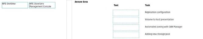 For HPE Primera, match each task with the management tool that can be used to perform it.
