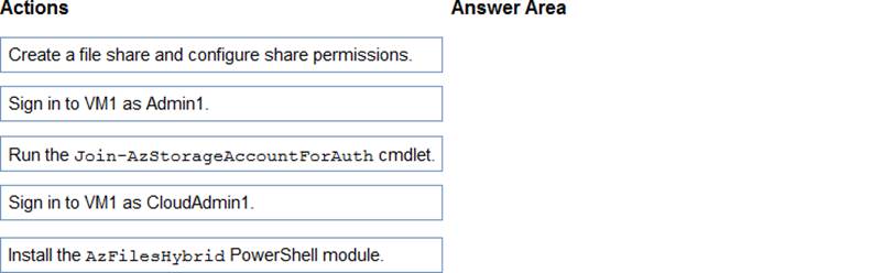 Which four actions should you perform in sequence? To answer, move the appropriate actions from the list of actions to the answer area and arrange them in the correct order.
