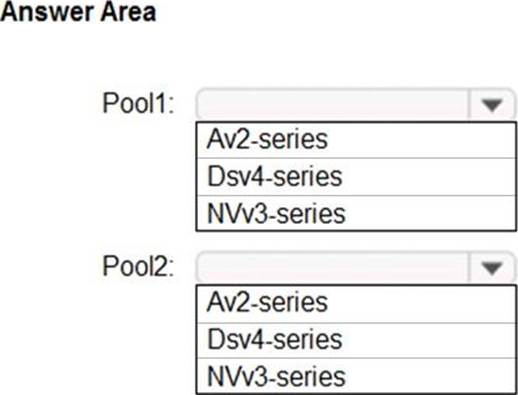 Which size should you recommend for each pool? To answer, select the appropriate options in the answer area. NOTE: Each correct selection is worth one point.