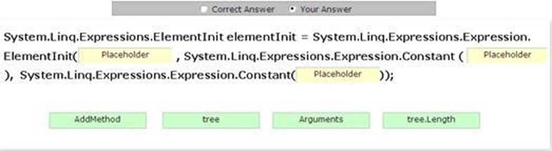 8. You work as an ADO.NET Application Developer for ABC Inc. The company uses Microsoft Visual Studio .NET 2008 as its application development platform. You create an ADO.NET application by using .NET Framework 3.5. You are using the System.Linq.Expressions namespace to represent the code expression as objects in the form of expression trees. You want to initialize the members of a newly created object.