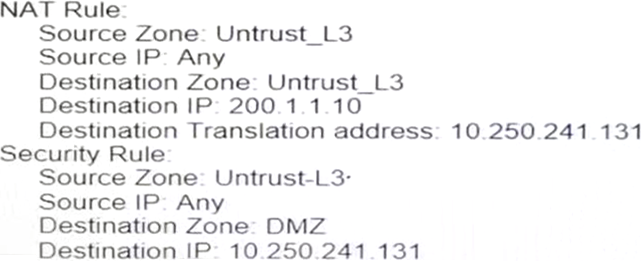 In order to reach the web server, which security rule and U-Turn NAT rule must be configured on the firewall?
