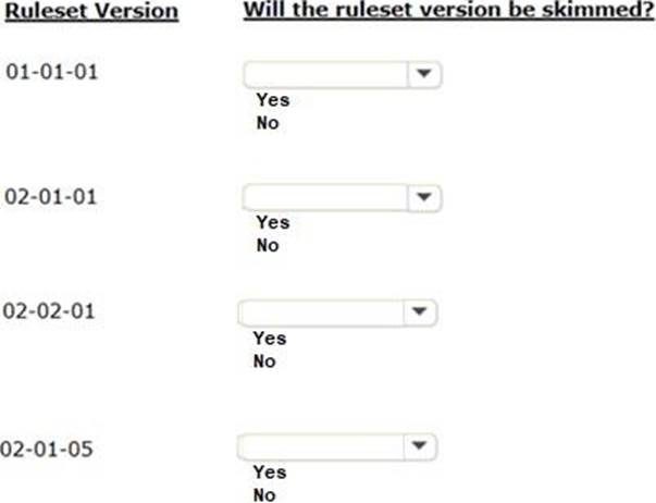 In the Answer Area, identify the ruleset versions that the skim operation considers when you perform a major version ruleset skim on ruleset ABC.