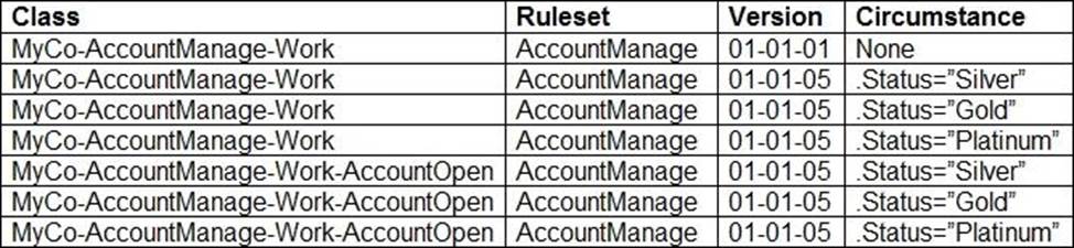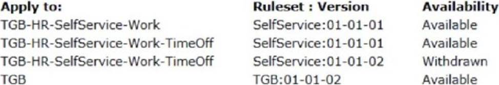 The current version of an application lists ABC:02-02 as an application ruleset. The ruleset versions listed in the Answer Area are also present on the system.