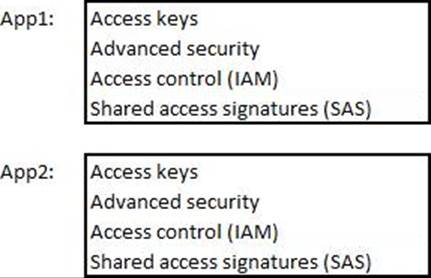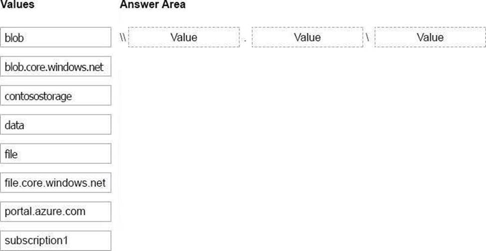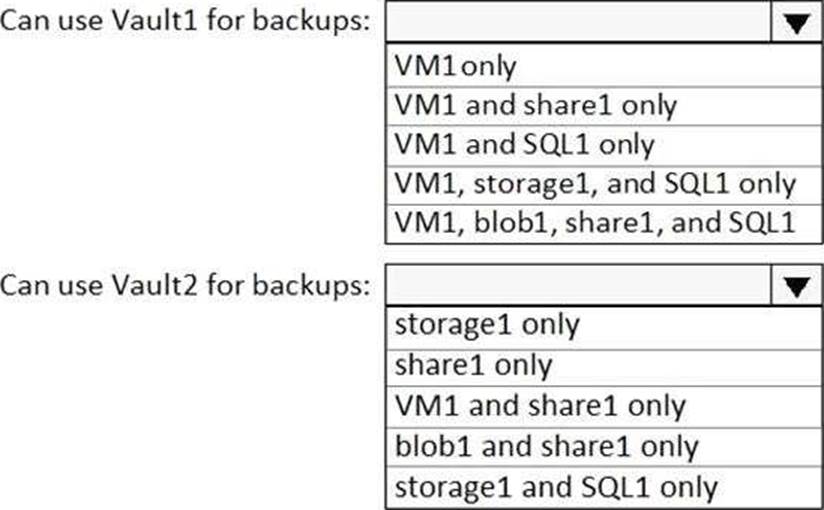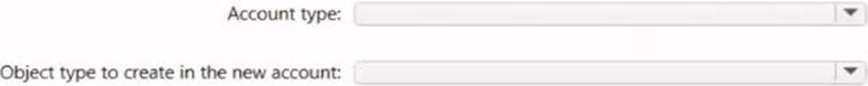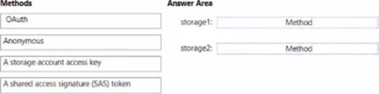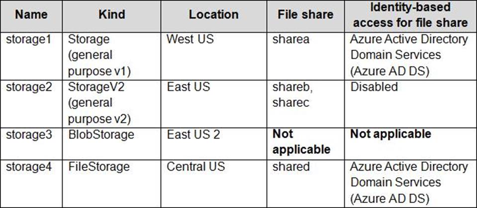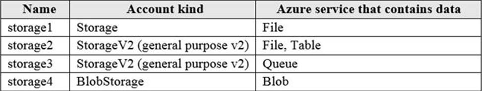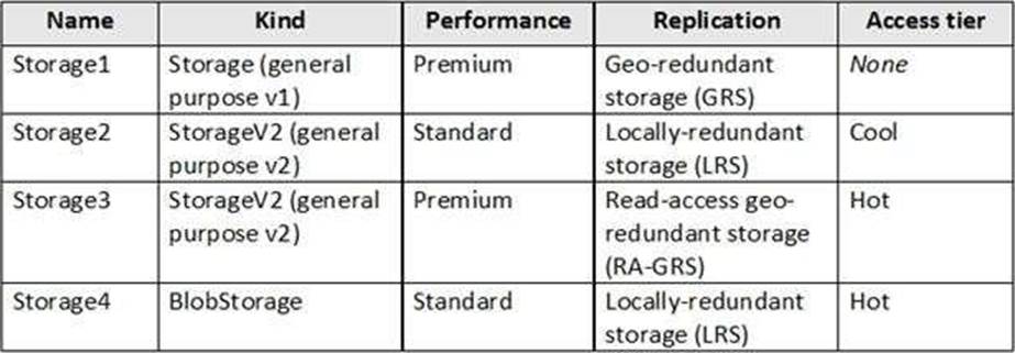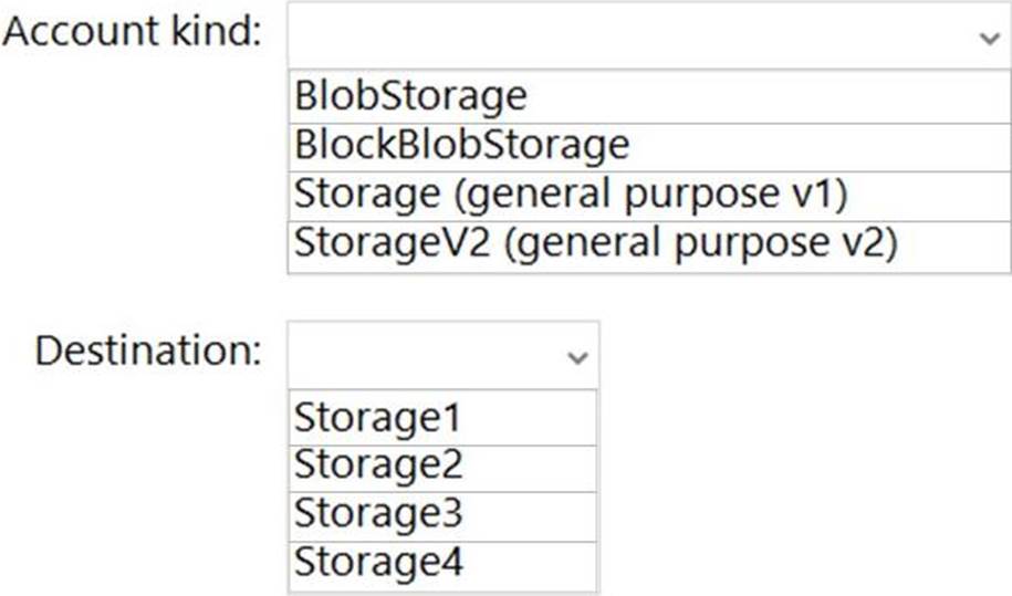 Which storage accounts should you use for each resource? To answer, select the appropriate options in the answer area. NOTE: Each correct selection is worth one point.