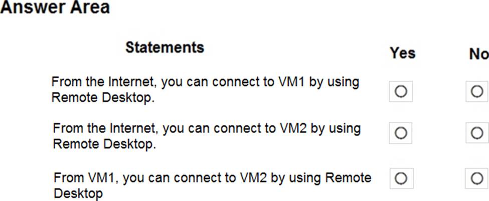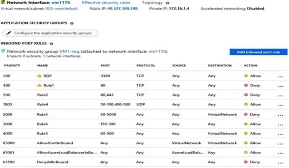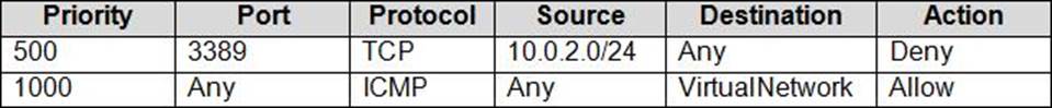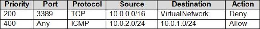 ✑ Create an NSG named NSG1 that will have the custom inbound security rules shown in the following table.