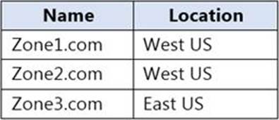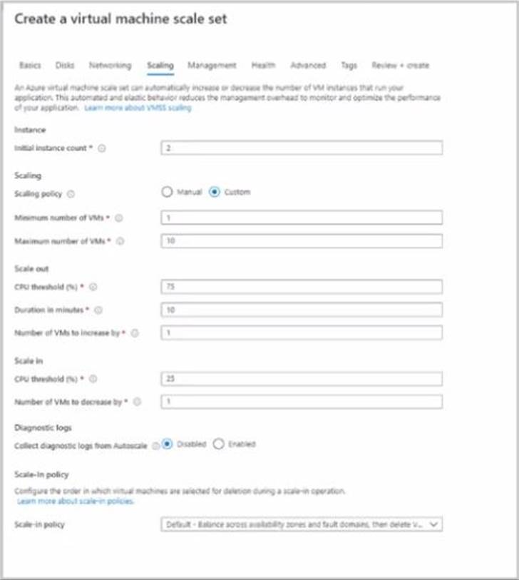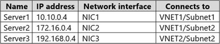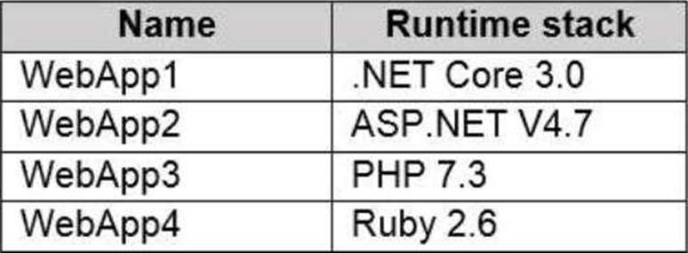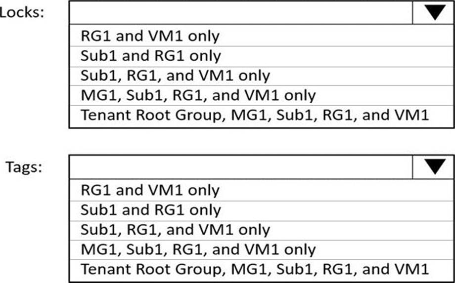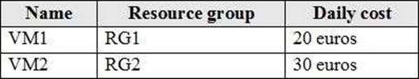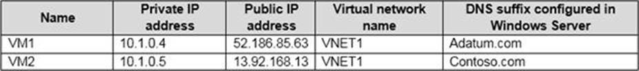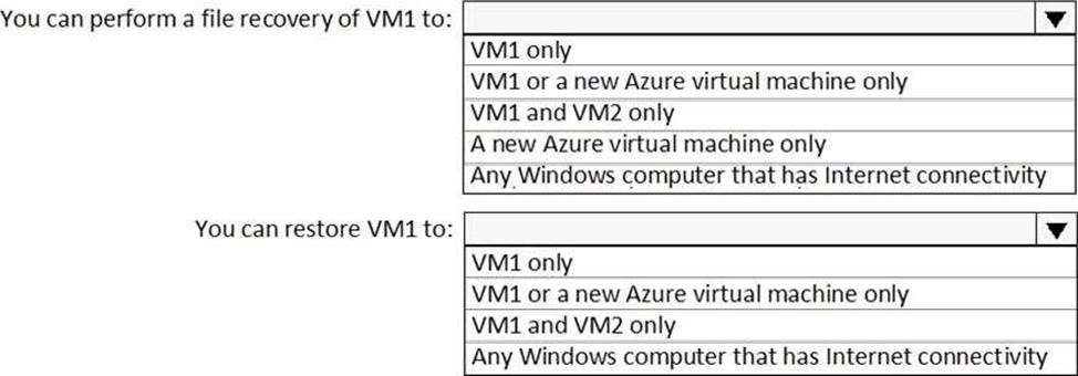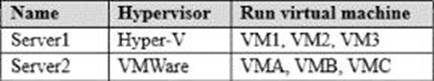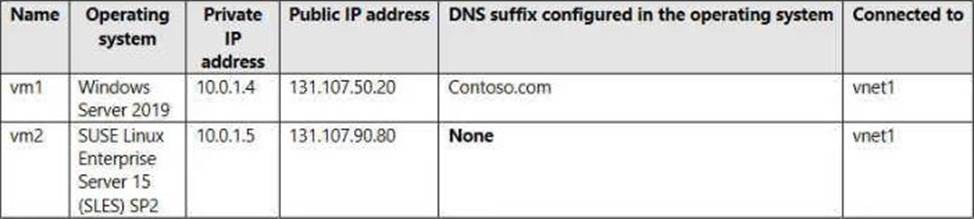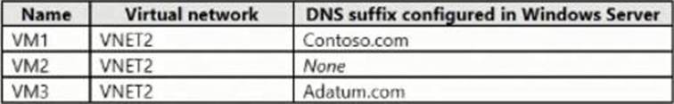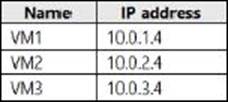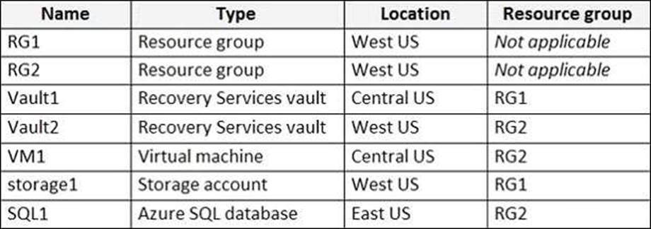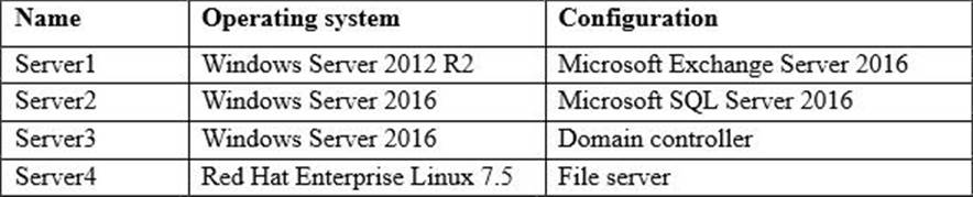 Sub1 contains virtual machines that run Windows Server 2019 as shown in the following table
