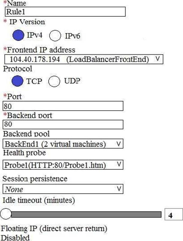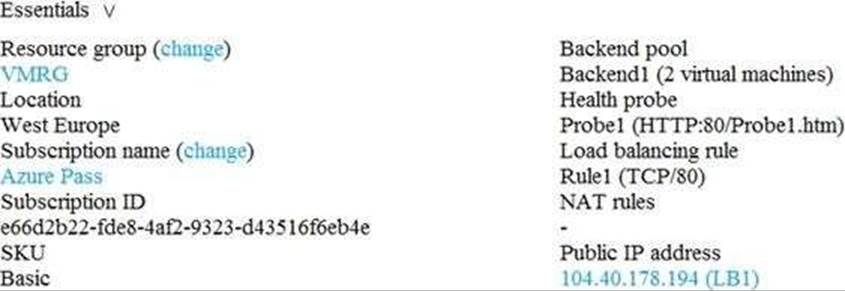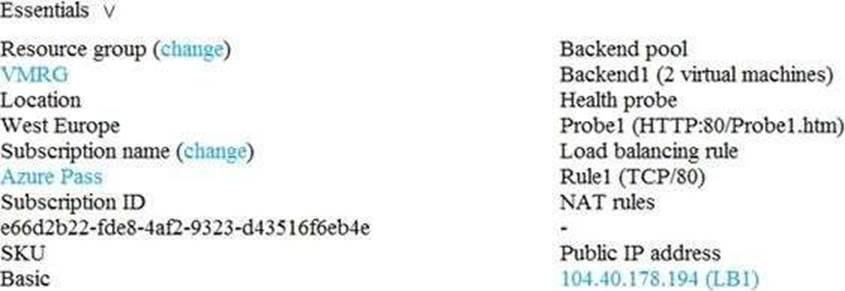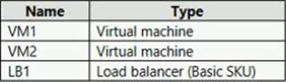 ✑ Create an internal Basic Azure Load Balancer named LB1 and connect the load balancer to VNET1/Subnet1