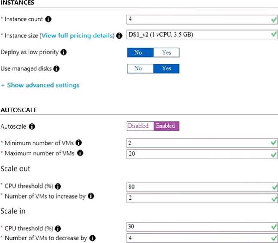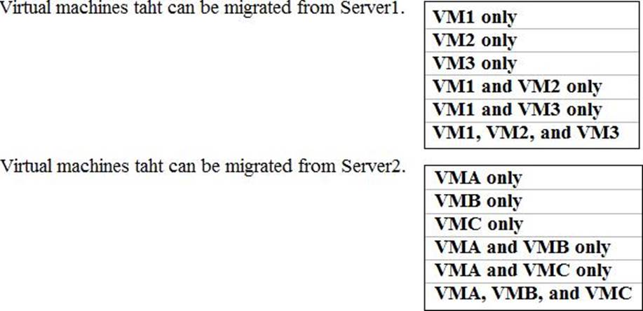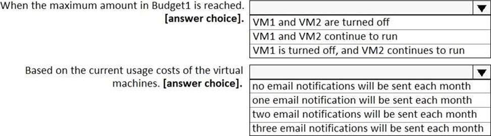 ✑ Trigger an alert if VM1 or VM2 has less than 20 GB of free space on volume C.
