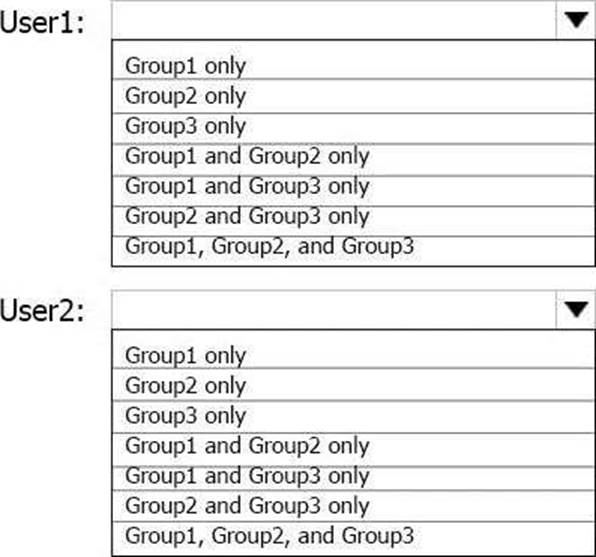User1 manages the resources in RG1. User4 manages the resources in RG2.