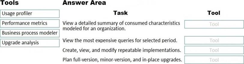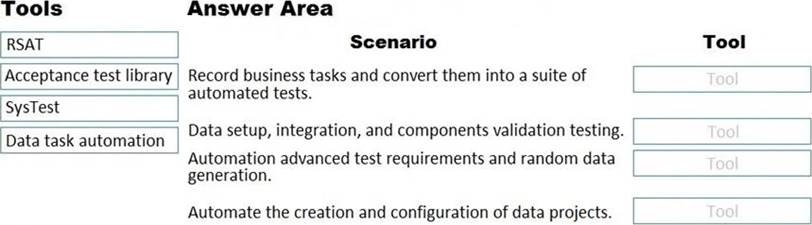 What should you recommend? To answer, drag the appropriate tools to the correct tasks. Each tool may be used once, more than once, or not at all. You may need to drag the split bar between panes or scroll to view content. NOTE: Each correct selection is worth one point.